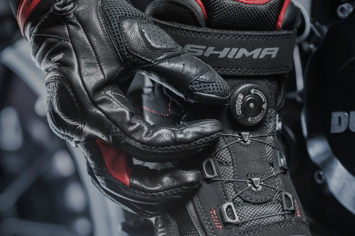 EXO Vented zostały stworzone z myślą o maksymalnej użyteczności i wygodzie. Zakładanie butów motocyklowych to jedna z ostatnich czynności przed ruszeniem w drogę. Nie powinno zatem przynosić trudności. Specjalny pasek, w który wyposażone zostały buty, pomoże z łatwością założyć je na stopy. Dopasowanie Twoich butów nigdy nie było szybsze i łatwiejsze.